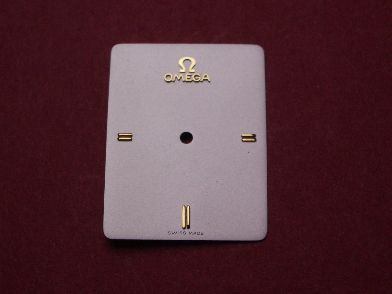 Omega Zifferblatt, ca. 19,0mm x 25,2mm, silber mit goldfarbenen Inlays