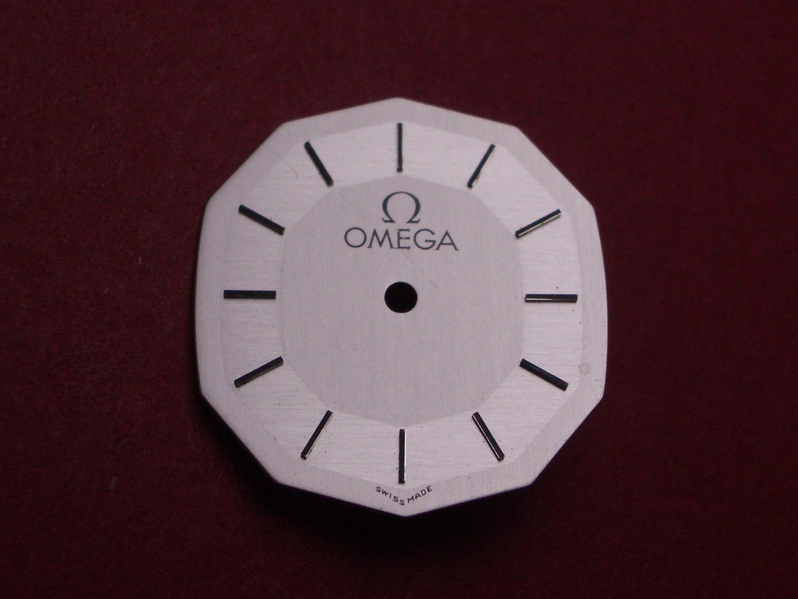 Omega Zifferblatt, ca. 20,0mm x 21,8mm, silber mit silberfarbenen Inlays