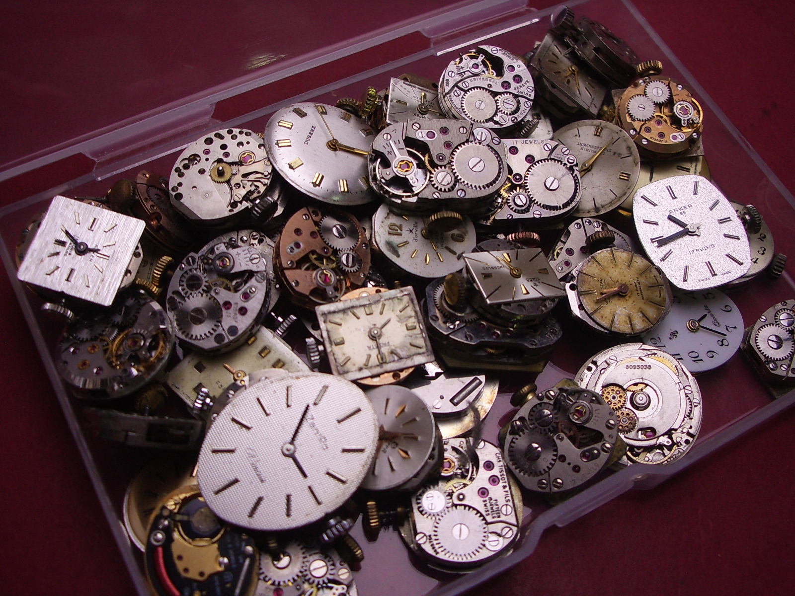 Konvolut mit 50 Damenuhrwerken ausgeschlachteter Golduhren, als Ersatz oder Ersatzteilträger geeignet