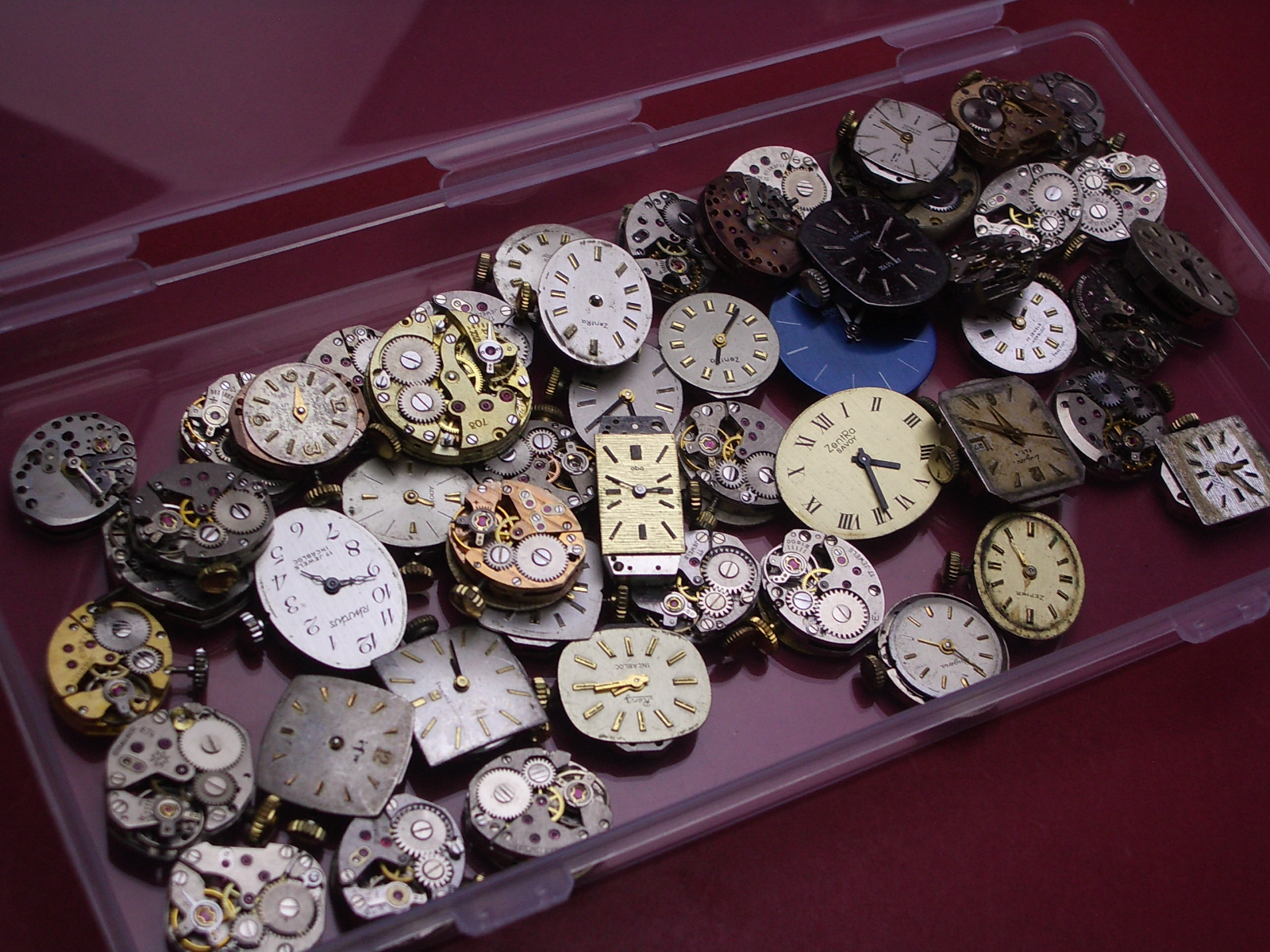 Konvolut mit 50 Damenuhrwerken ausgeschlachteter Golduhren, als Ersatz oder Ersatzteilträger geeignet