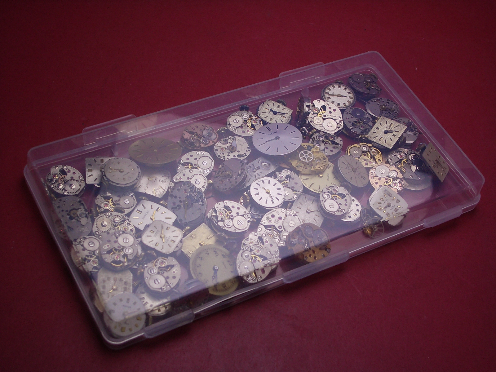 Konvolut mit 50 Damenuhrwerken ausgeschlachteter Golduhren, als Ersatz oder Ersatzteilträger geeignet