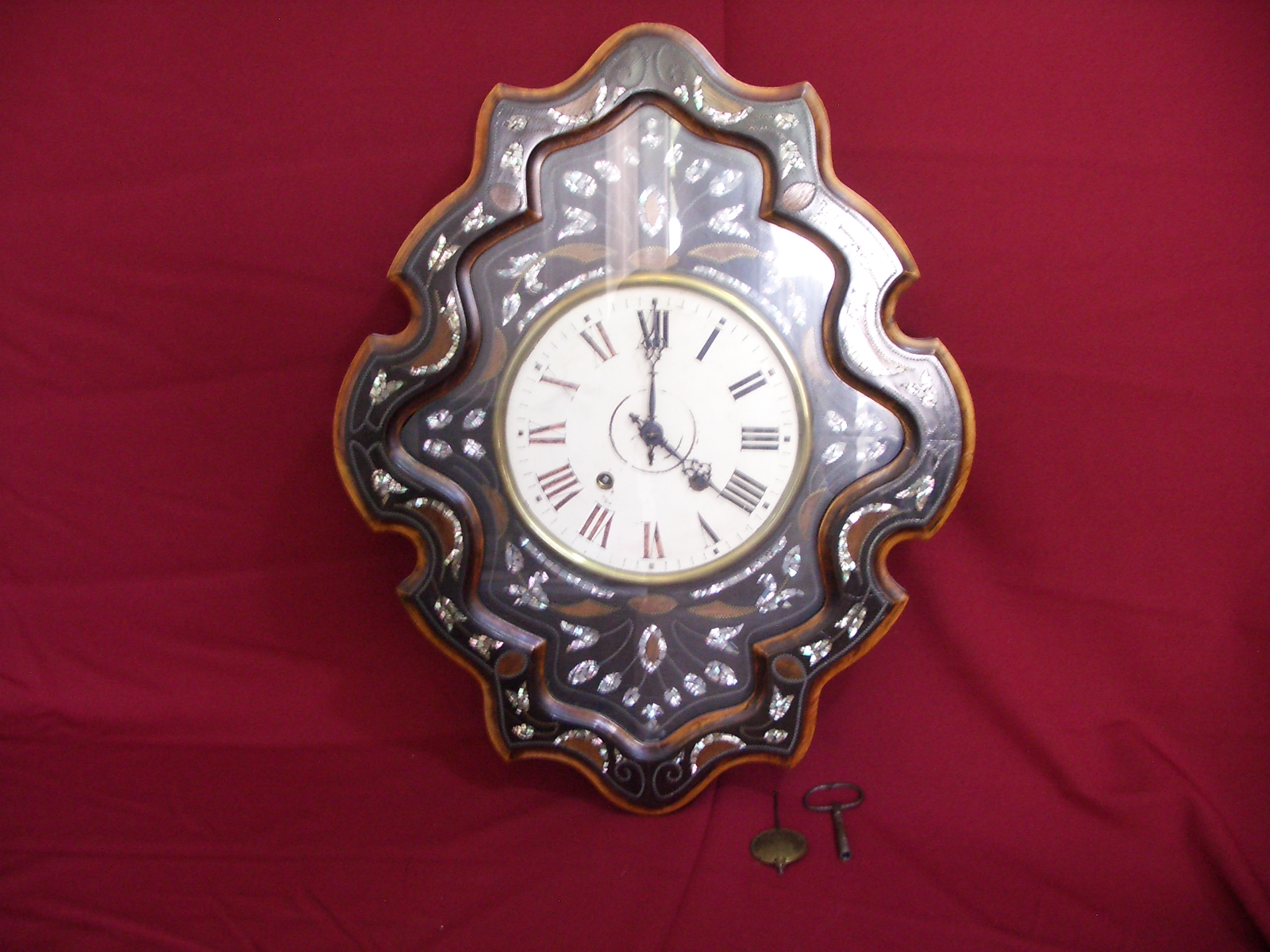 Komplette Uhr, antikes Ochsenauge (Oeil de Boeuf), ca. 65cm x 51,5cm, mit Pendel und Aufziehschlüssel, NUR ABHOLUNG MÖGLICH