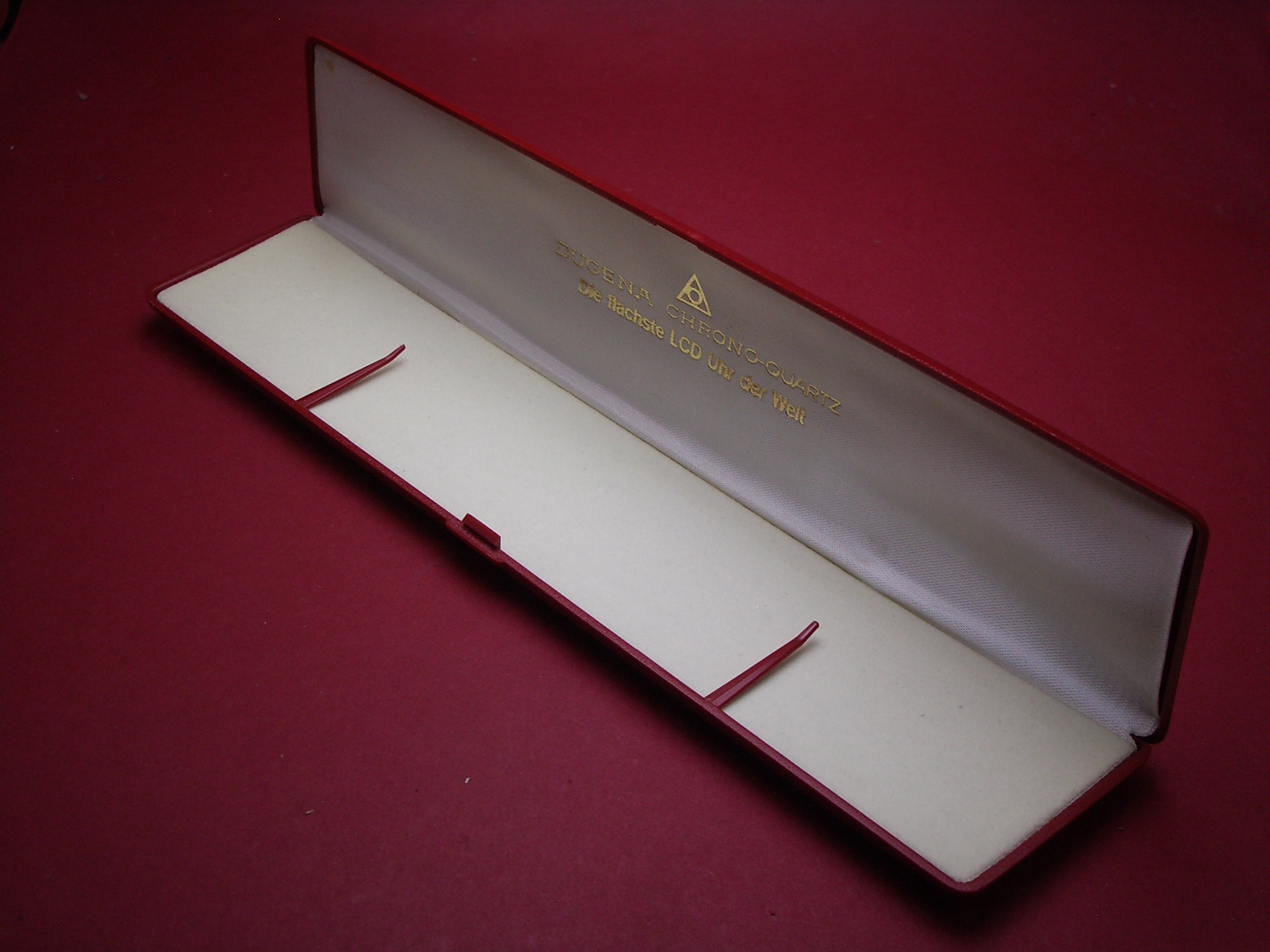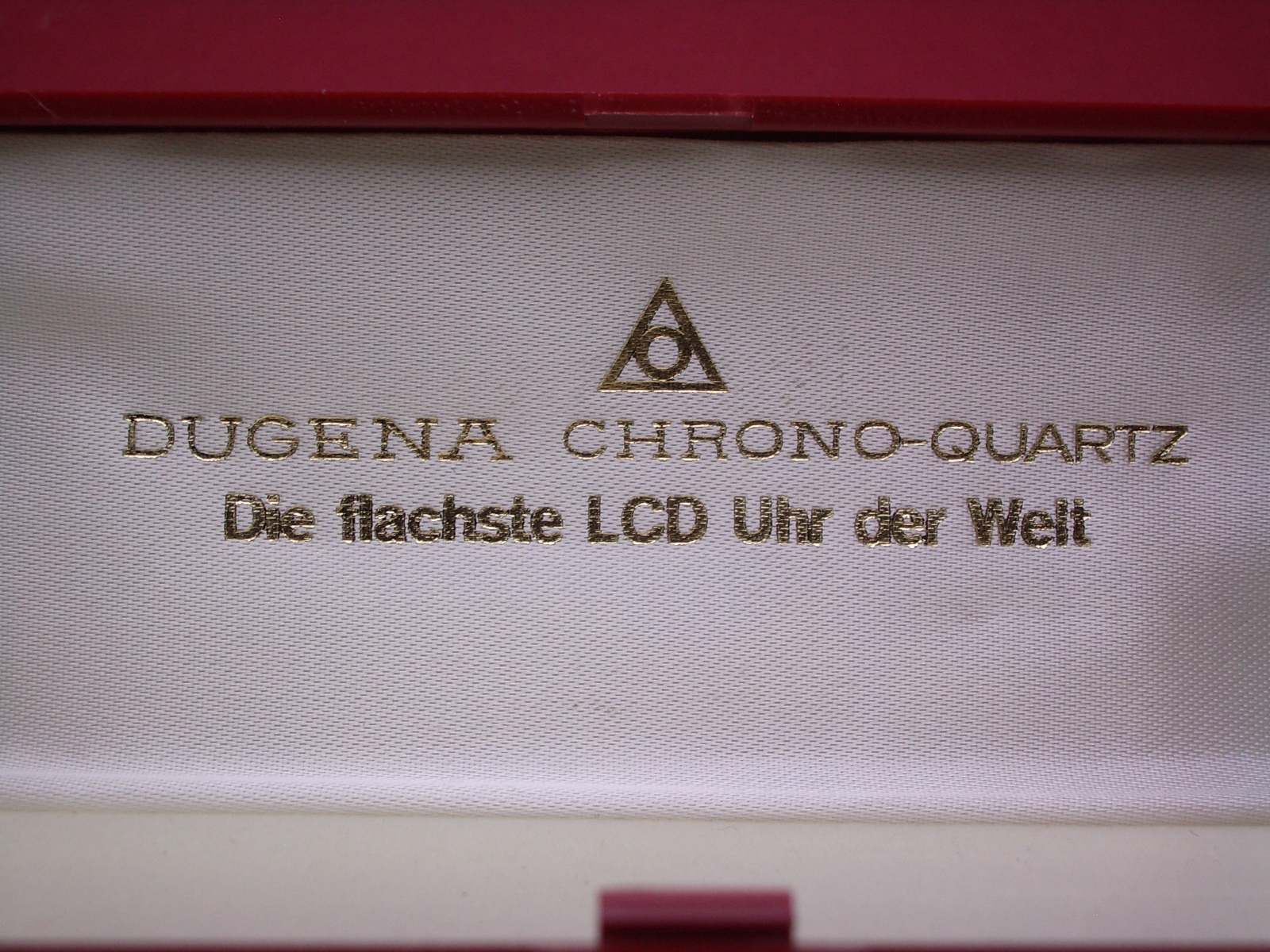 Dugena Chrono Quartz Uhren-Box, "Die flachste LCD Uhr der Welt", von ca.1980, NOS (New Old Stock)