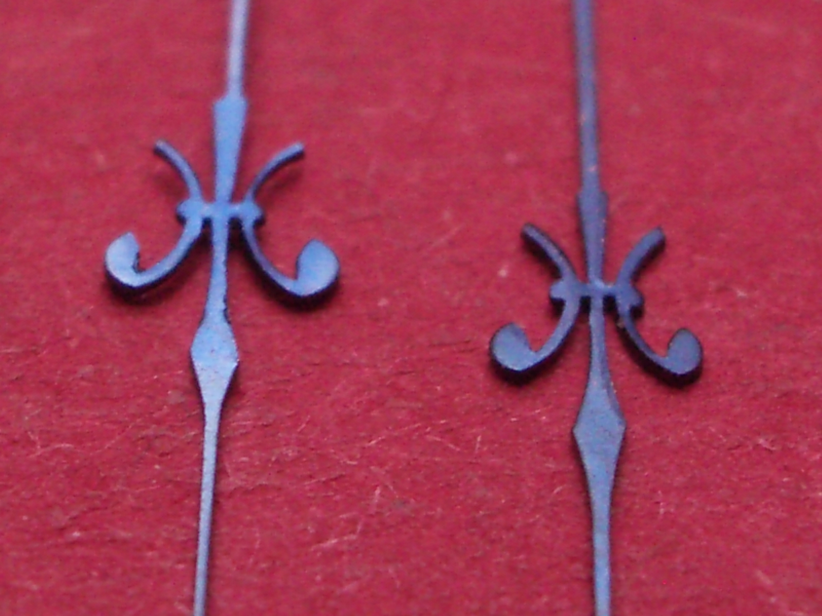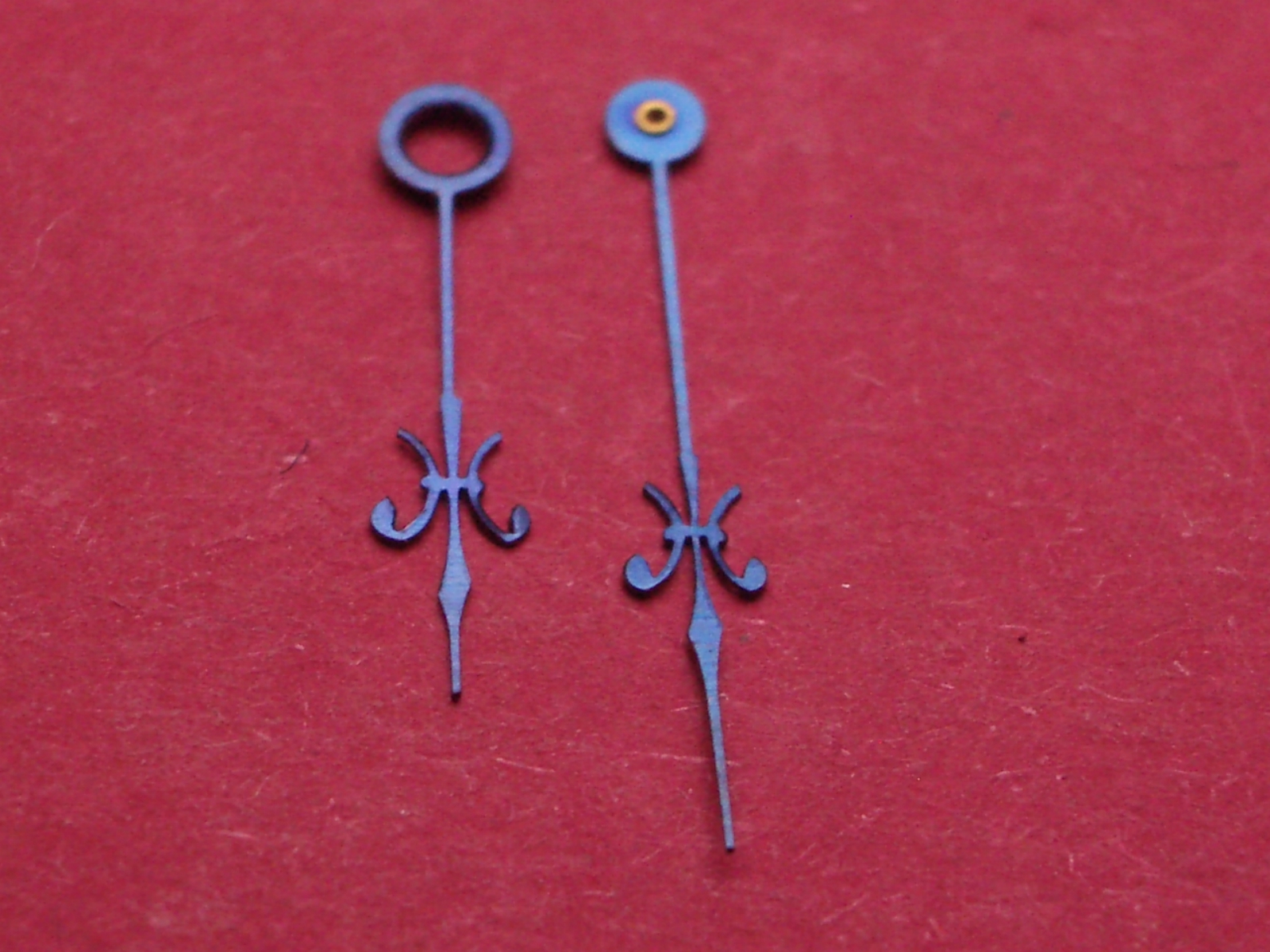 Taschenuhr-Zeiger blau, Loch-Ø Std/Min 190/<30, Länge Stundenzeiger: ca. 15,8mm, Länge Minutenzeiger ca. 20,8mm