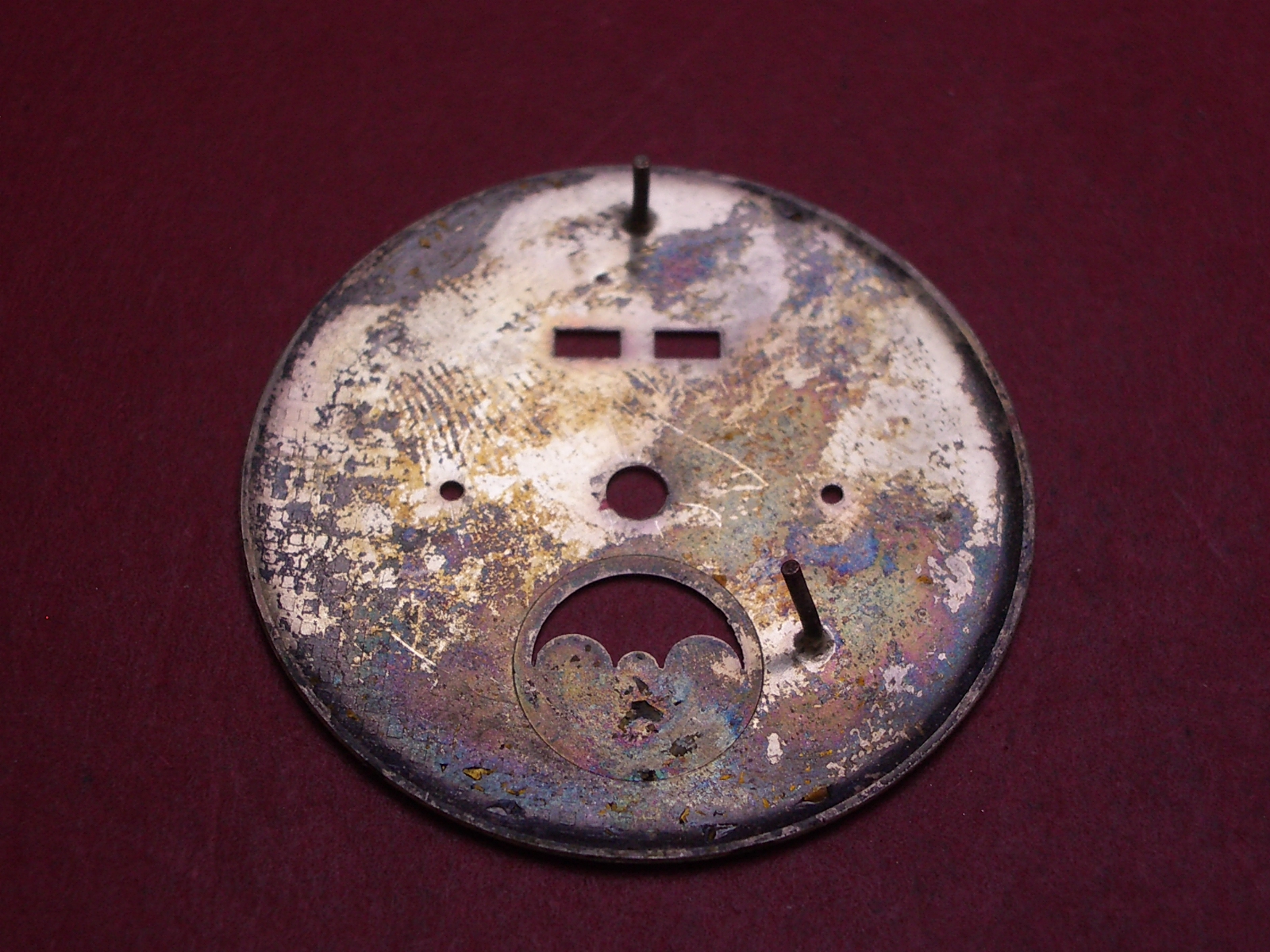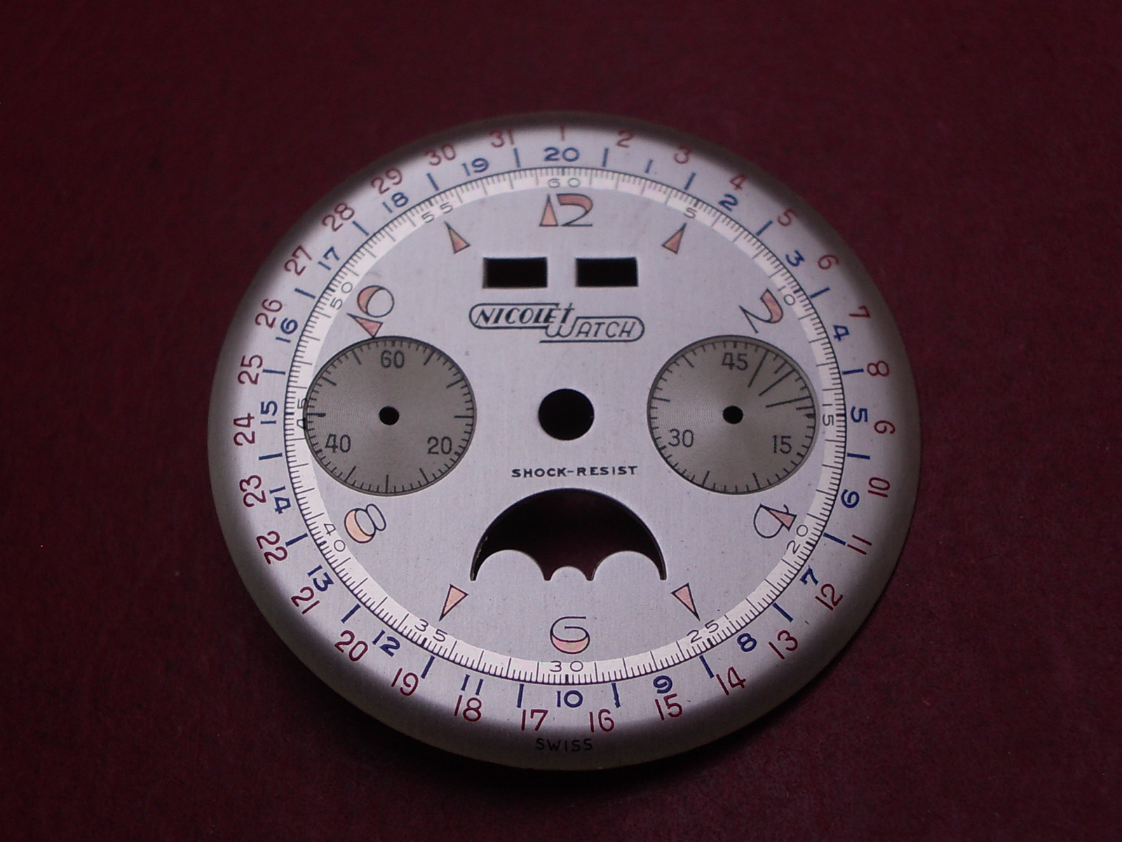 Venus Zifferblatt für Kal. 203 oder 204 (Basiskaliber 180), Ø 32,4mm, creme/rosé/rot/blau, "NICOLET WATCH", NOS (New Old Stock)