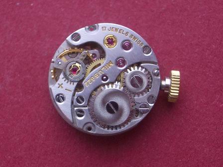 rundes Handaufzugswerk mit 17 Steinen, Signiert: MILUS 622, Baujahr ca 1955, Daten: 6 Zoll, Durchmesser: 13,5mm, Höhe: 3,2mm, Frequenz 21600 A/h
