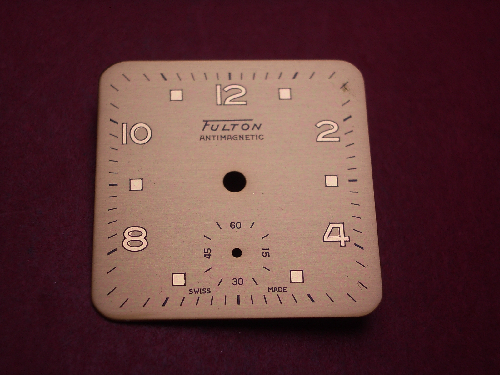 Arogno Zifferblatt, 24,5mm x 24,5mm, goldfarben, "FULTON", für Kal. 153, Ref. 2570, NOS (New Old Stock)