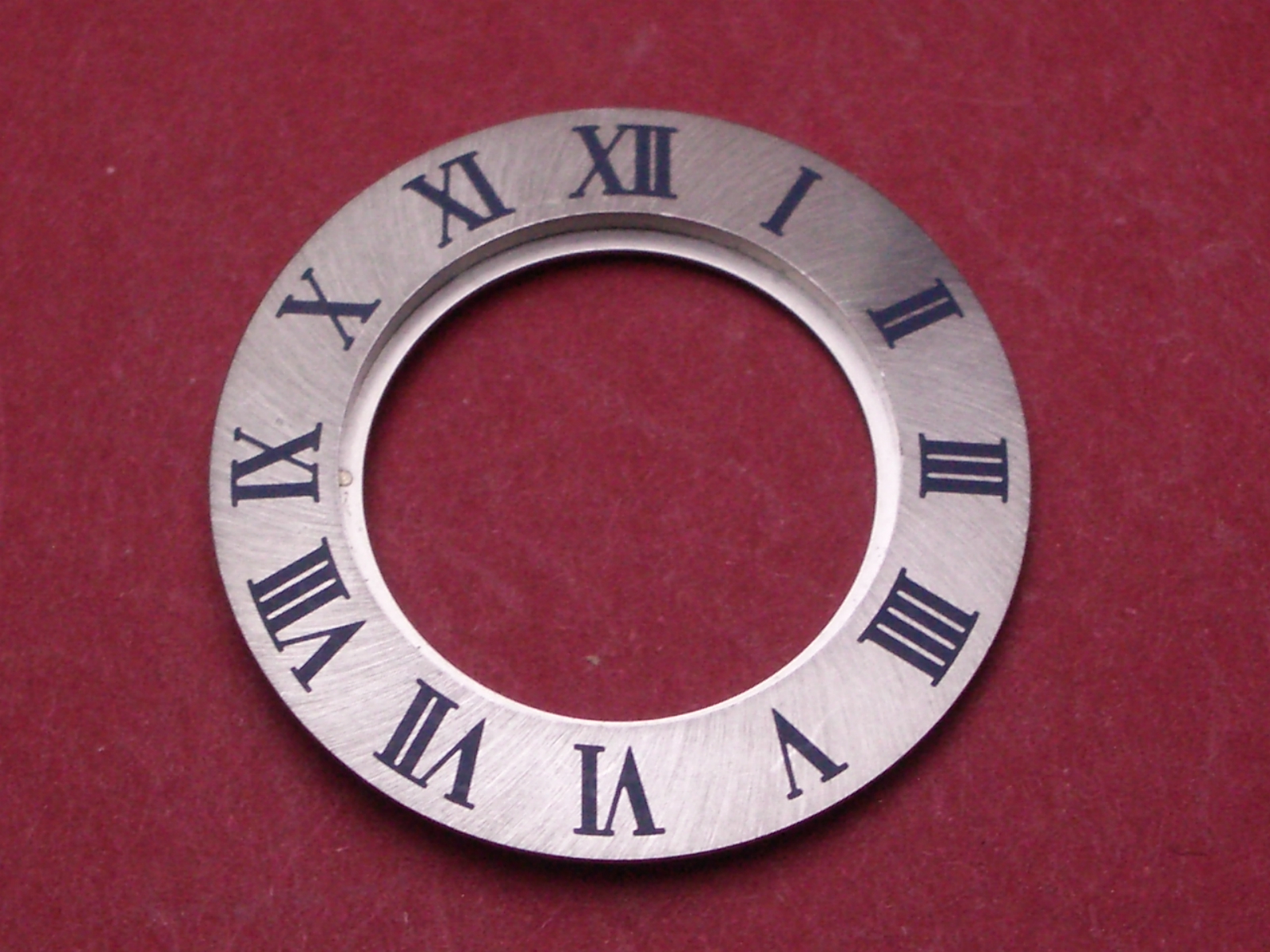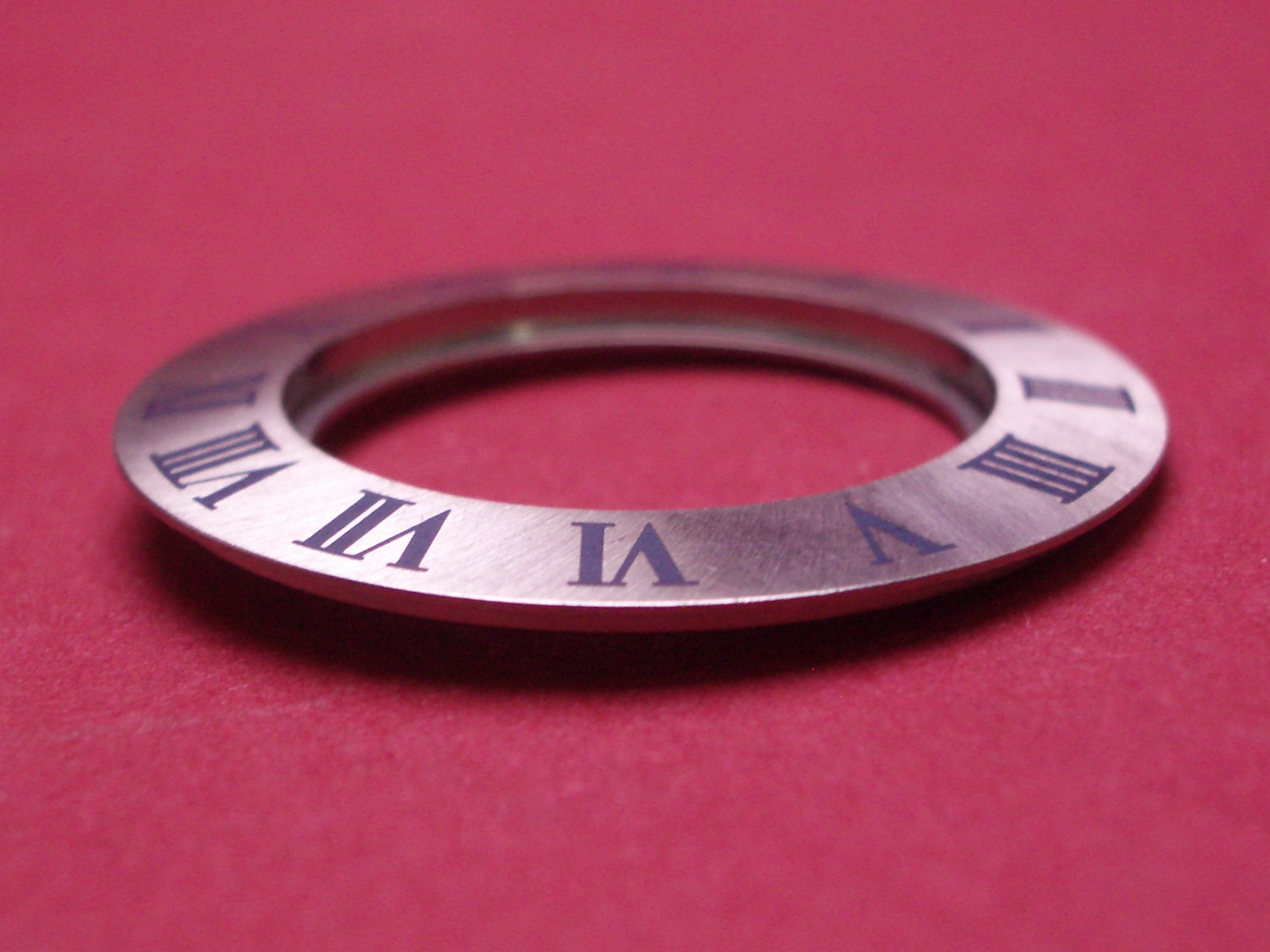 Cartier Lünettenring, Außen-Ø 28mm, Innen-Ø 17,3mm, Stahl, matt, blaue Schrift