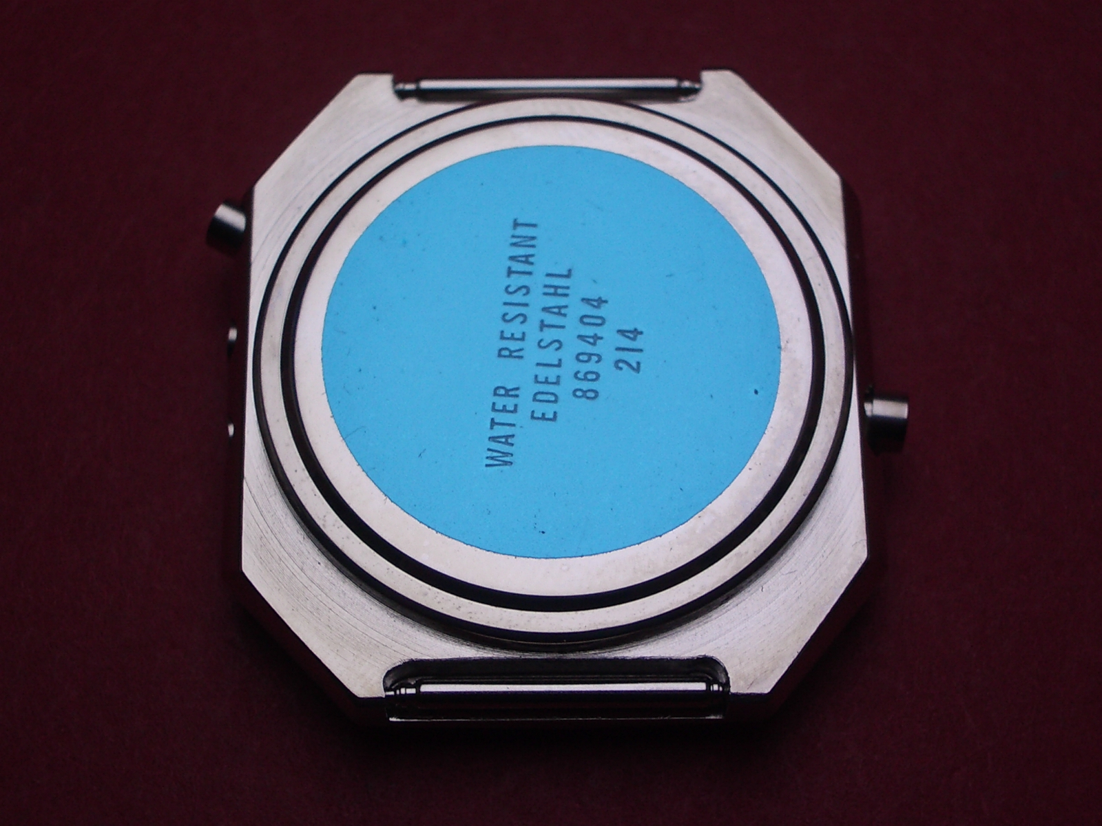 Dugena Gehäuse für LED aus den 70er Jahren, Stahl, 36,5mm x 38,6mm, mit Federstegen, NOS (New Old Stock)