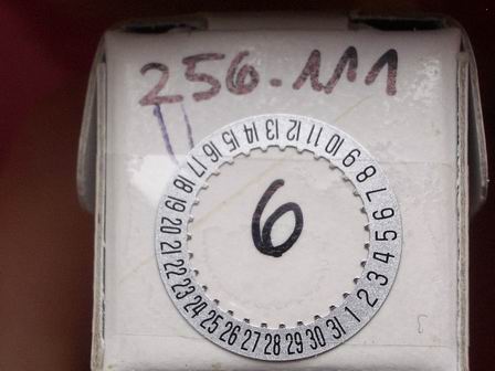 ETA Datumsscheibe, Kaliber 256.111, schwarze Schrift auf silbernen Grund, Datumsfenster bei der 6