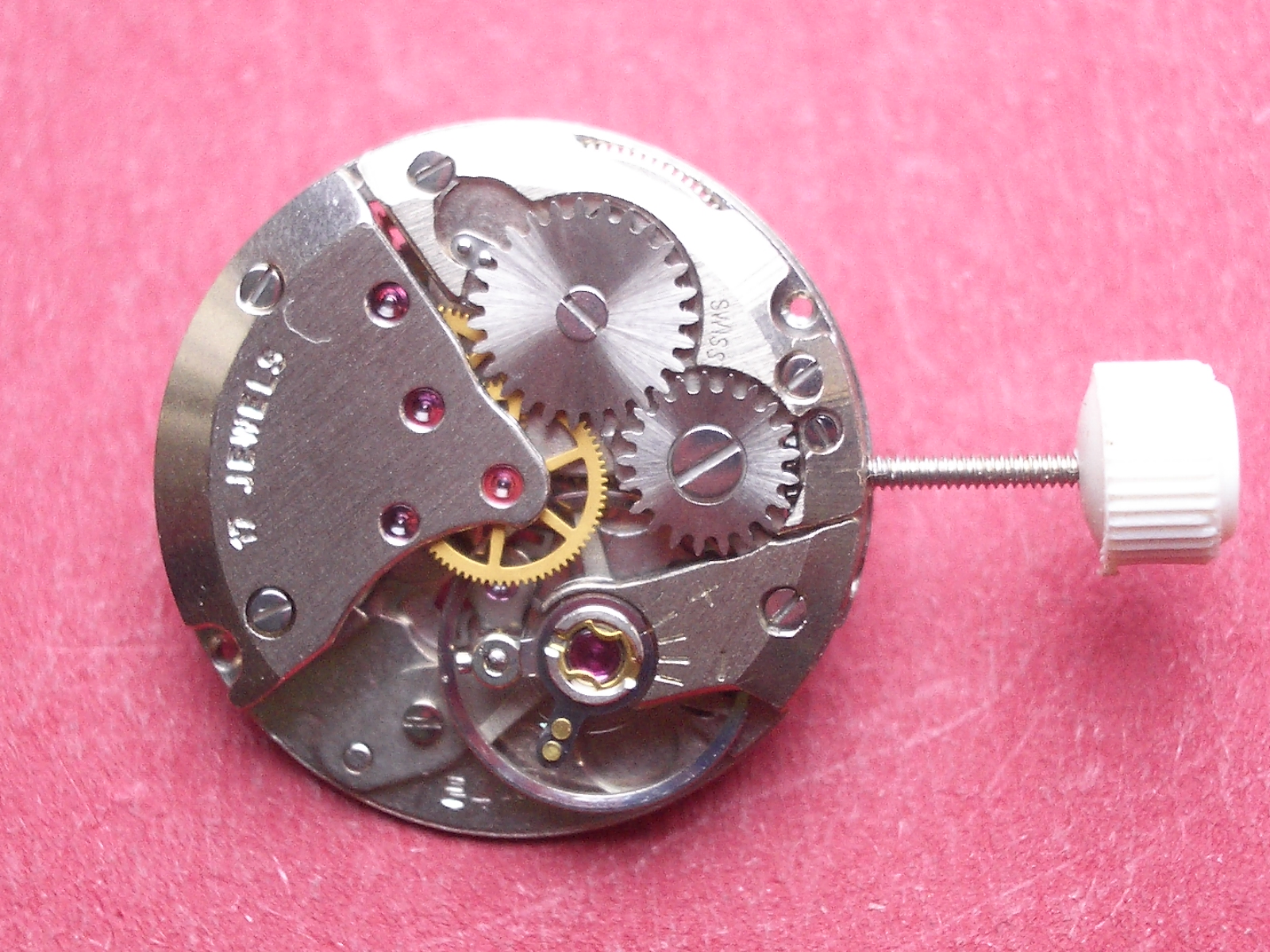 rundes Handaufzugswerk, Zentralsekunde, 17 Steinen, Baujahr ca.1970, Größe: 7,75 Zoll, Durchmesser 17,2mm, Höhe: 3,3mm, 21600 A/h, Zeigerlochmaße: Stunde: 1,20mm, Minute: 0,70mm, Sekunde: 0,20mm