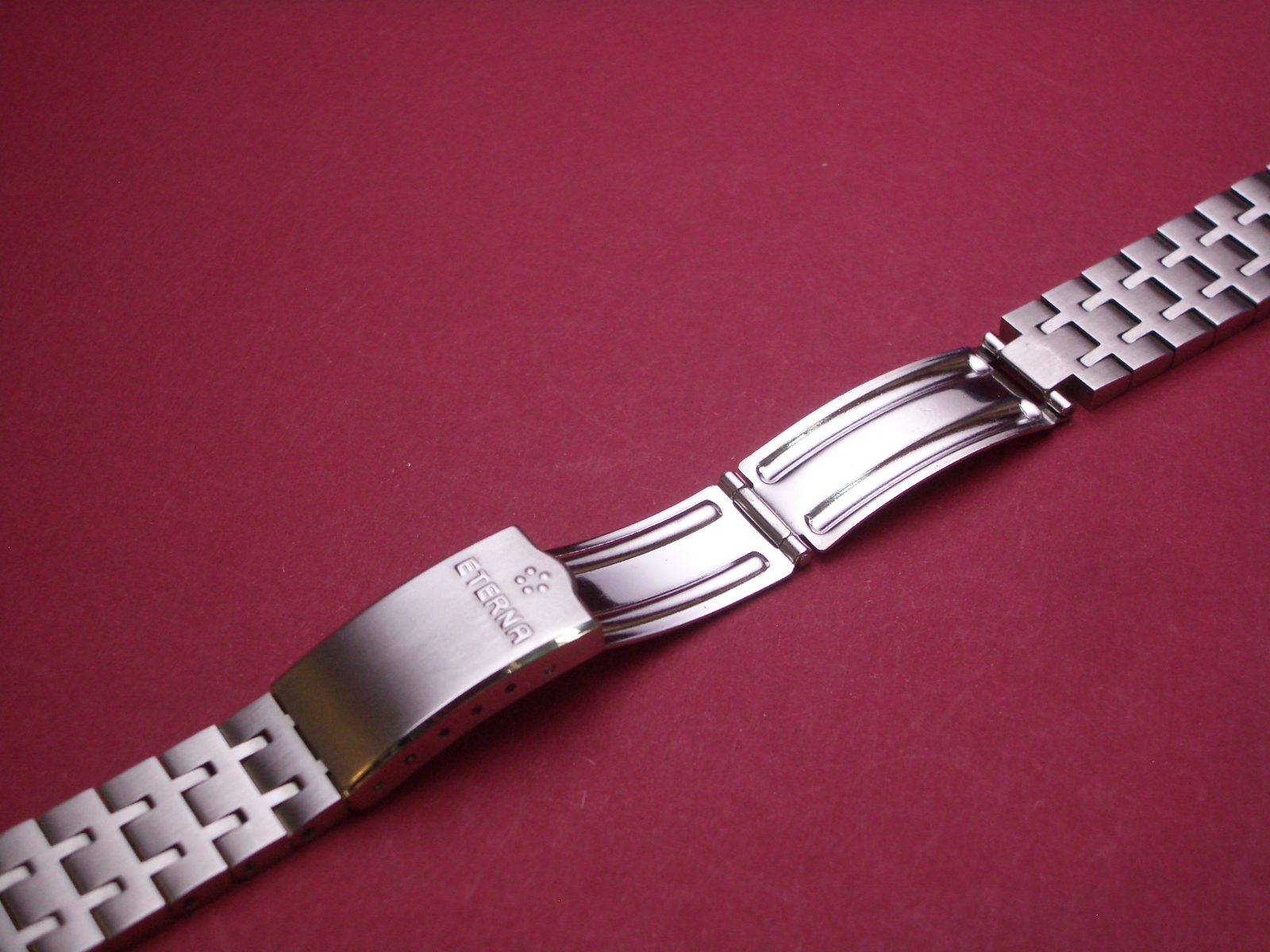 Eterna Armband Stahl mit Faltschließe, Bandbreite am Gehaüse 15,1mm und an der Schließe 12,6mm , Bandlänge: ca 148mm im geschlossenen Zustand, ohne Anchlußglied