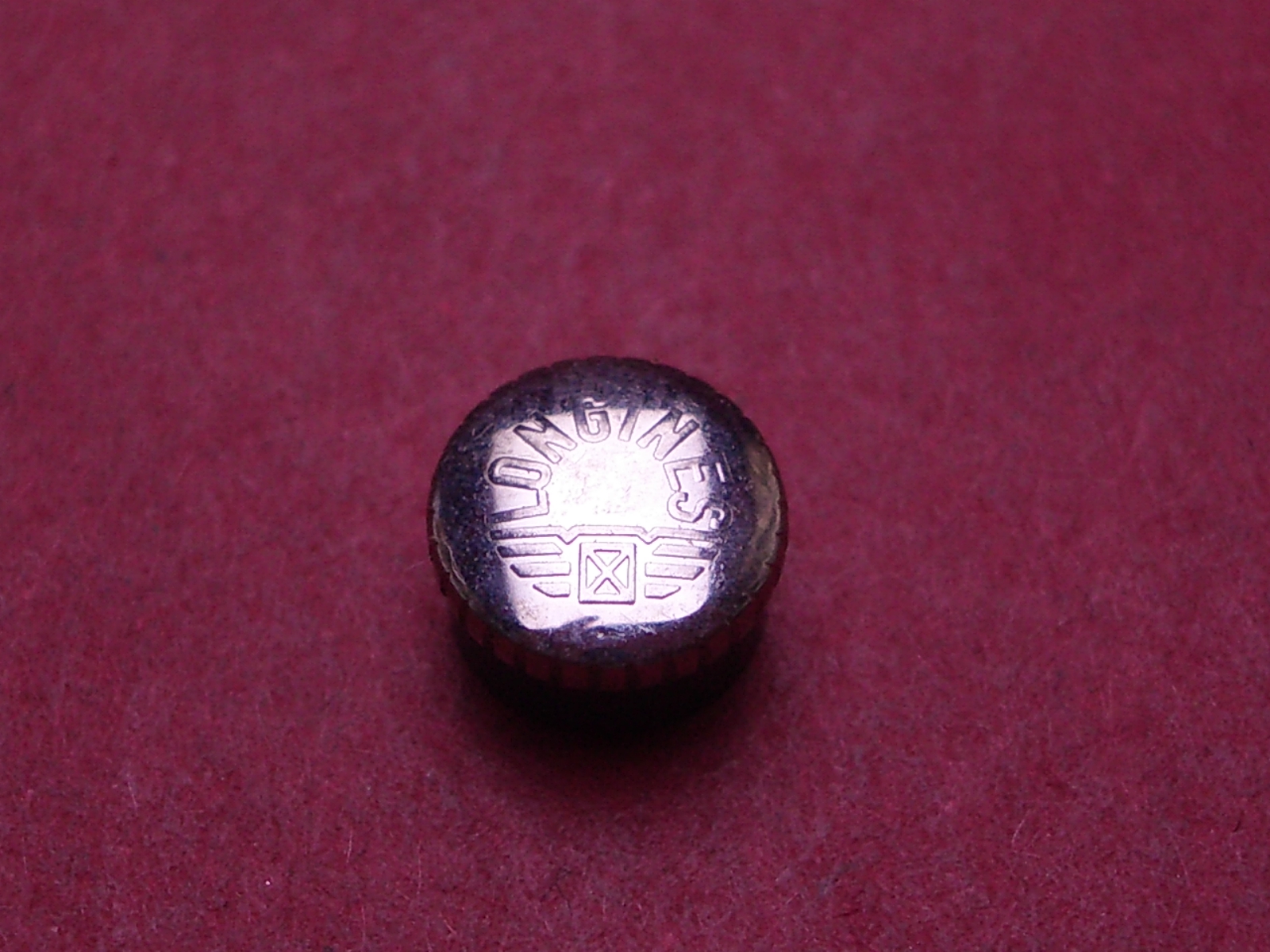 Longines Krone, Stahl/gebläut, Ø 6,6mm, Höhe 4,1mm, NOS (New Old Stock)