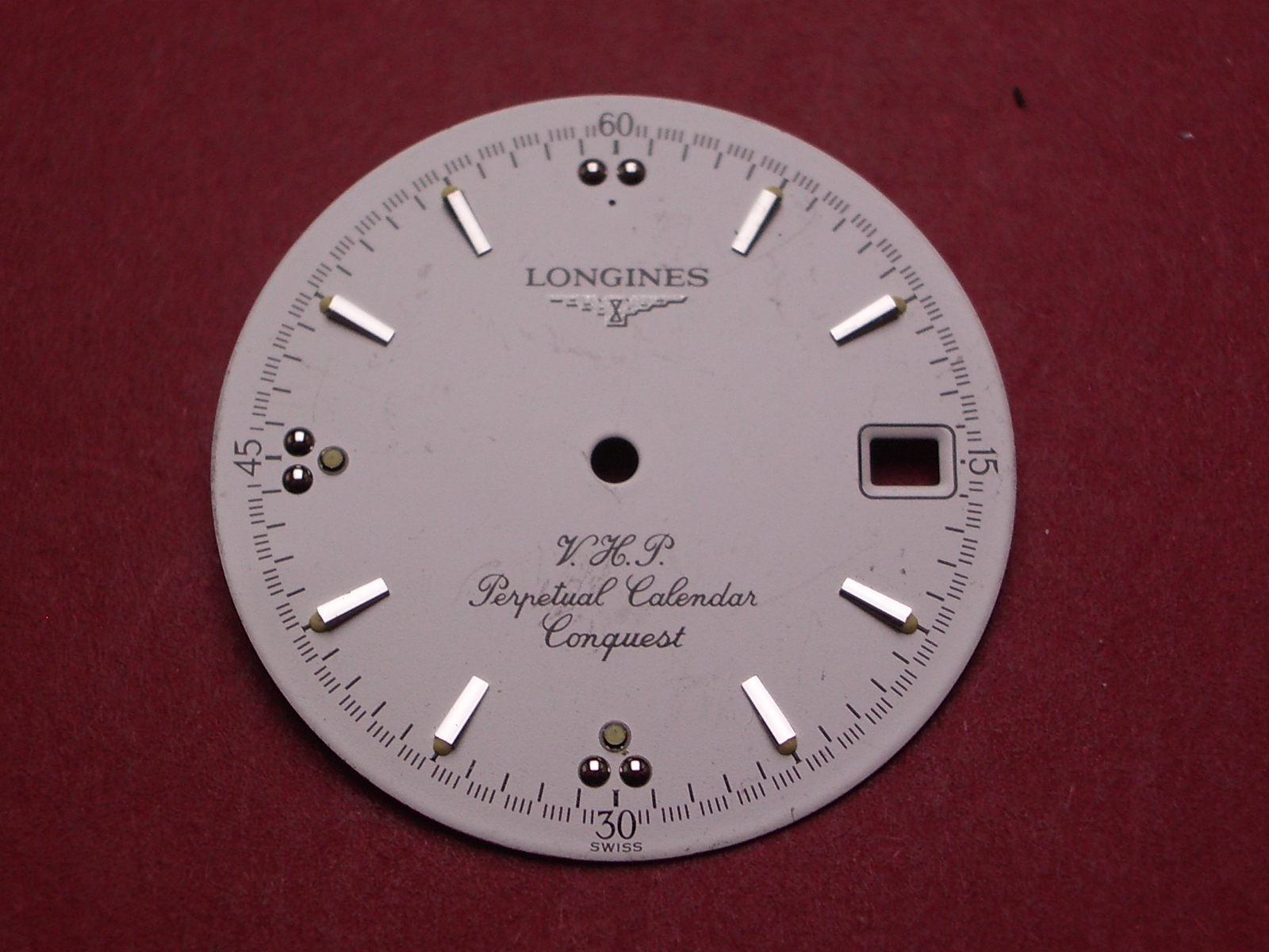 Longines Zifferblatt, Ø 28,5mm, weiß mit silberfarbenen Inlays