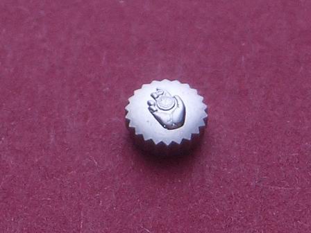 Durchmesser 4,63mm Höhe der Krone: 2,17mm. Gewinde 0,9mm. Auf der Krone wird eine Hand mit einer Uhr abgebildet!