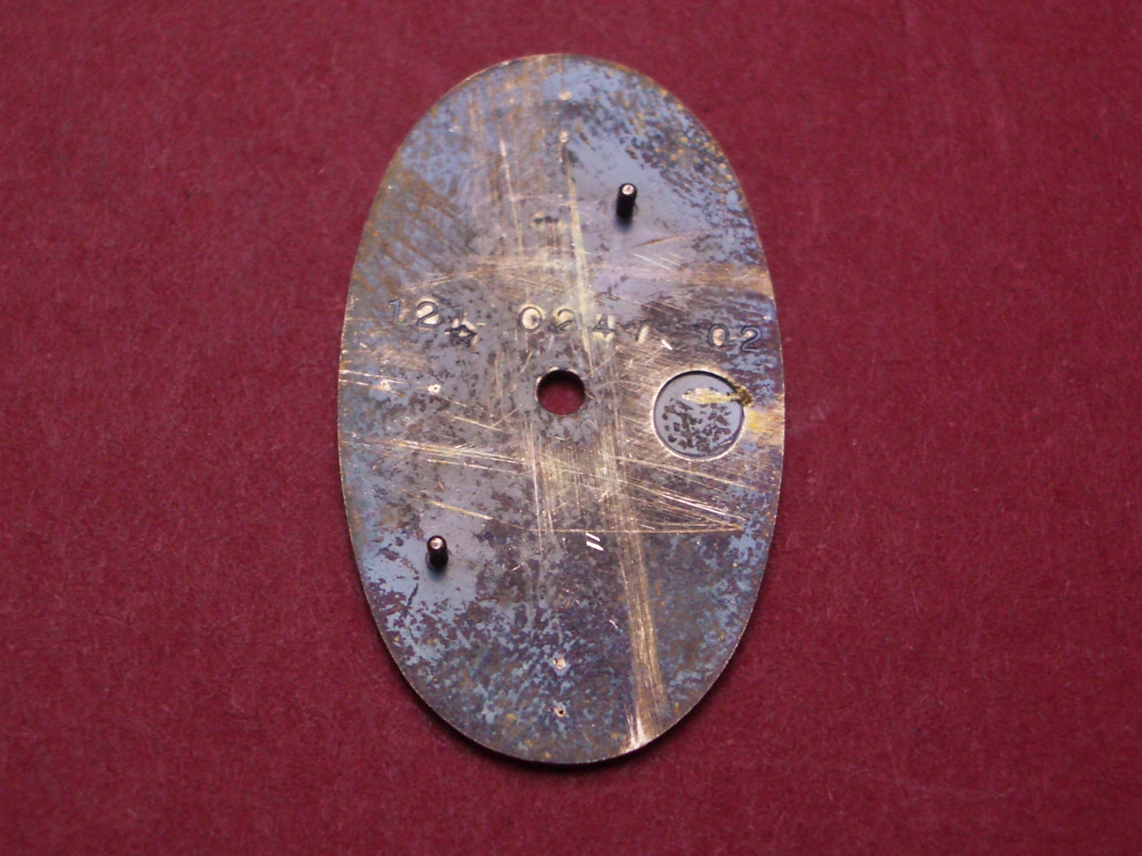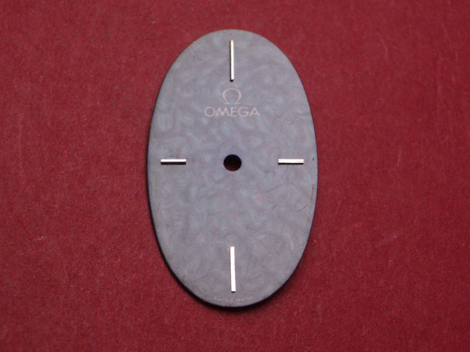 Omega Zifferblatt, ca. 15,3mm x 25,9mm, dunkelblau mit silberfarbenen Inlays