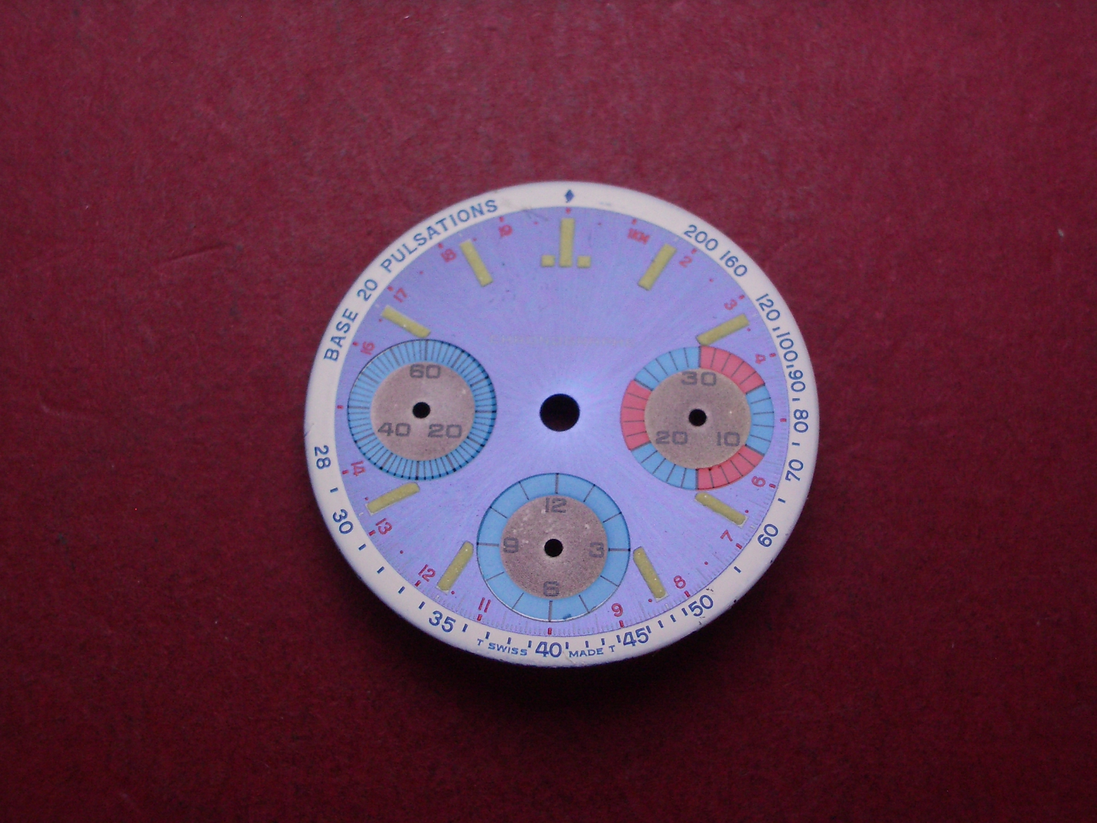 Chronographen-Zifferblatt Valjoux Kaliber: 72 Durchmesser: 29,0mm Farbe: lila/blau/rot/weiß