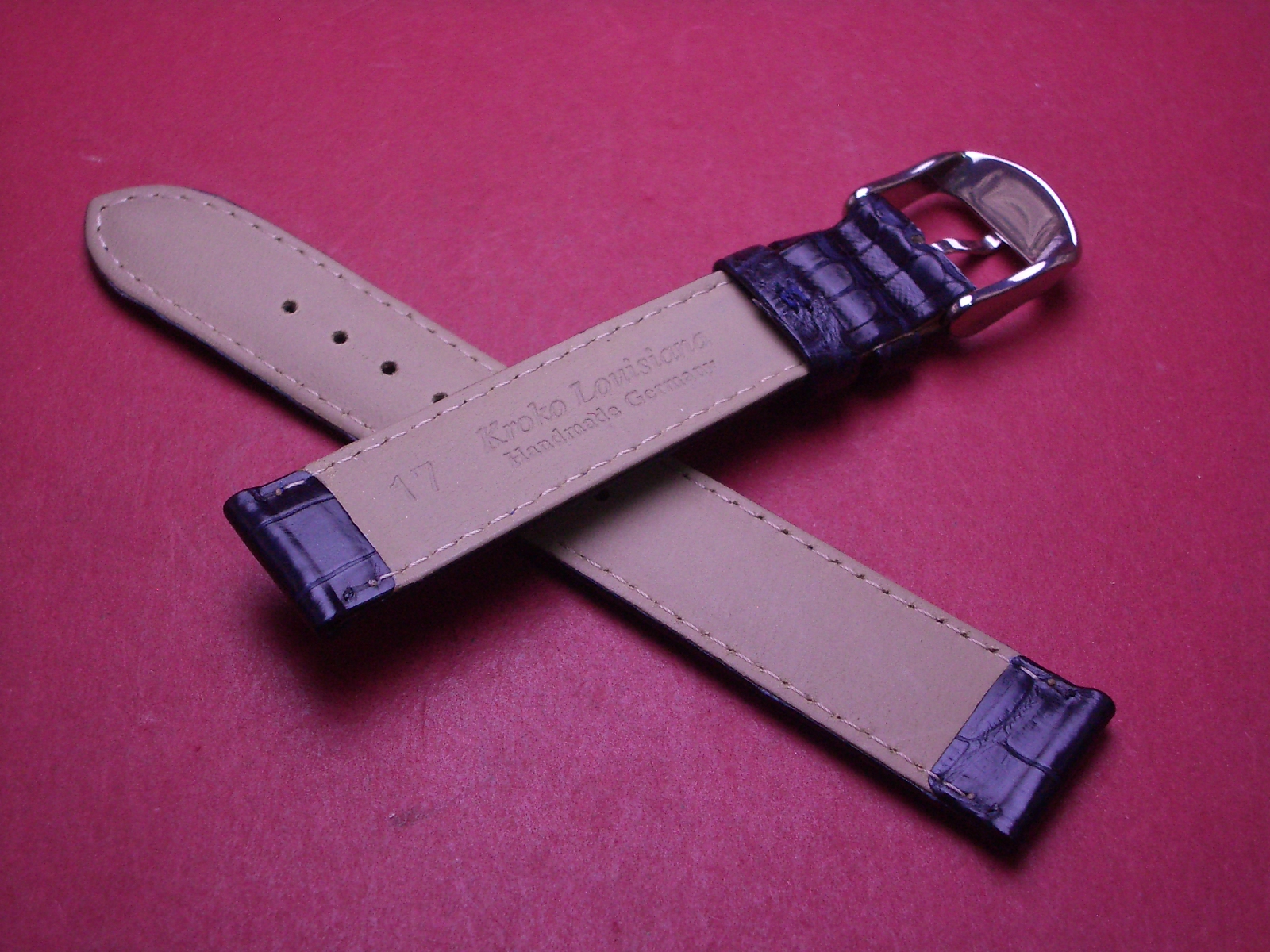 Louisiana Lederarmband, Krokodil, Breite: 17mm-16mm, Längen: 117mm & 77mm, Farbe: dunkelblau matt