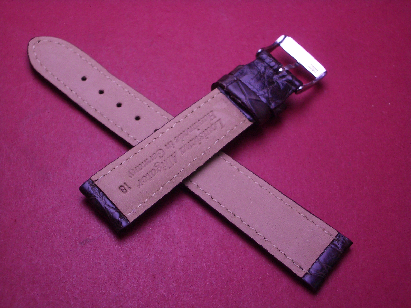 Lederarmband, Krokodil, Breite: 18mm-16mm, Längen: 117mm & 74mm, Farbe: dunkelbraun