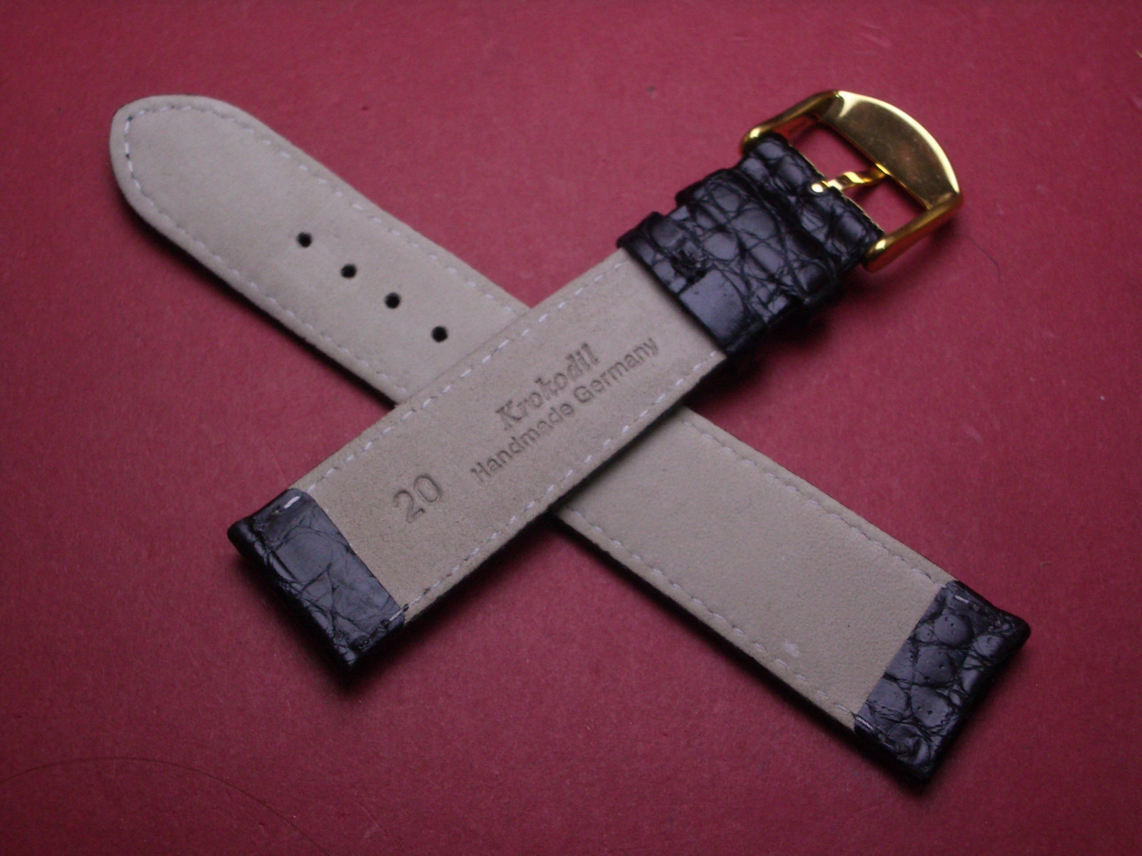 Material: feinstes weiches Krokoleder, Schließe: Edelstahl vergoldet