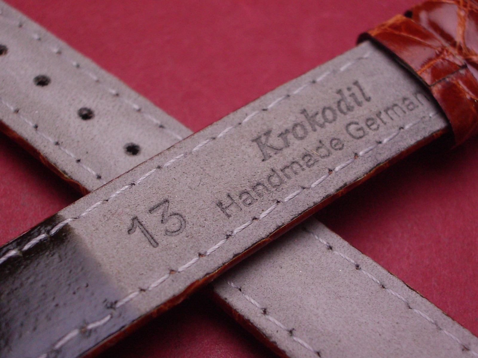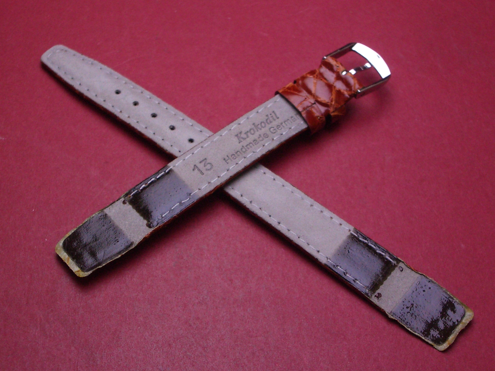 Lederarmband, Krokodil, für feste Stege, Breite: 13mm-12mm, Länge: 110mm & 68mm, Farbe: braun glänzend