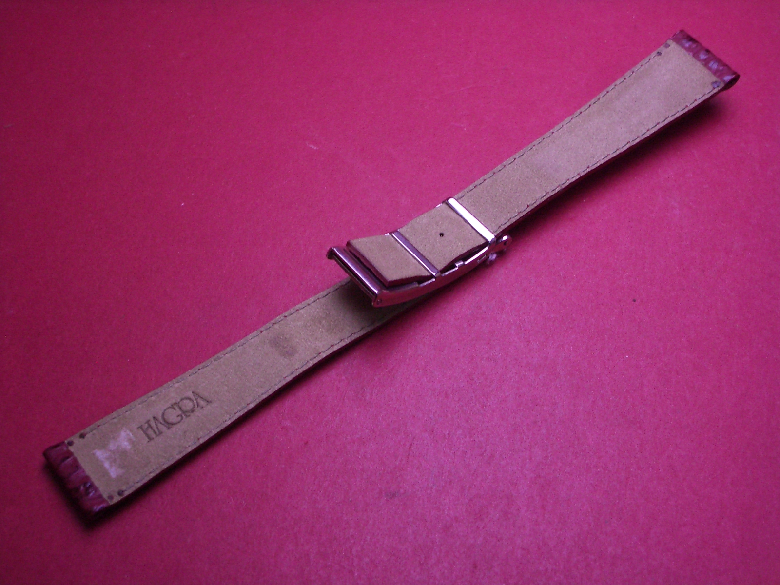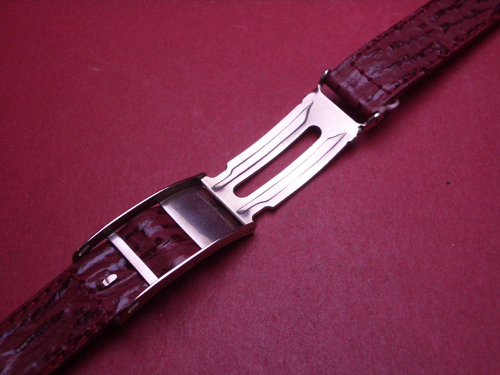 Hagra Lederarmband, Kalb mit Haifischprägung, Breite: 18mm-14mm, mit Faltschließe, Gesamtlänge: 17,3cm, Farbe: weinrot