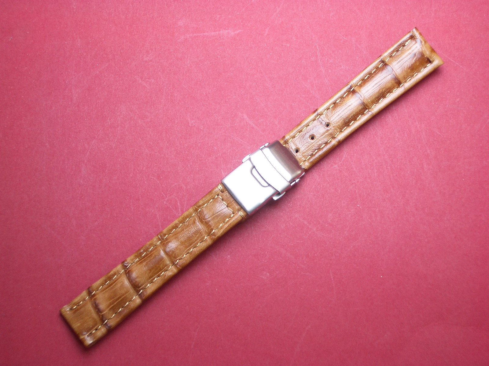 Leder-Armband 18mm hell braun, Edelstahl Sicherheitsfaltschließe