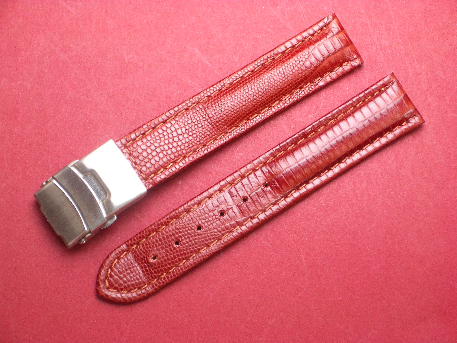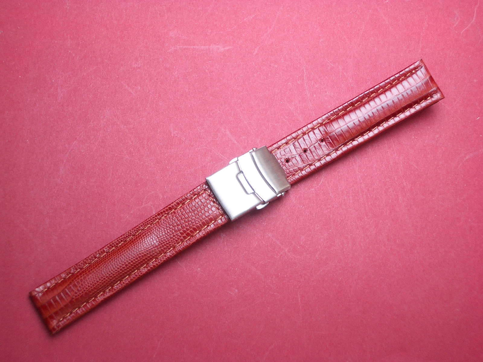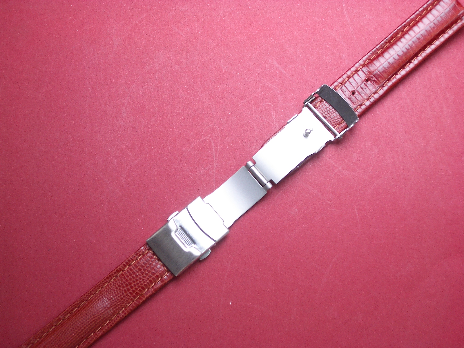 Leder-Armband 20mm rot/braun, Edelstahl Sicherheitsfaltschließe