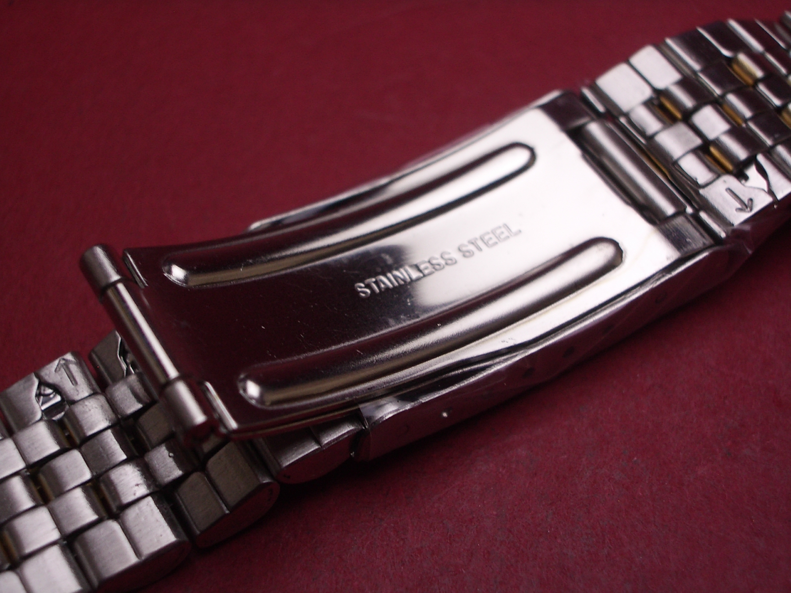 Metall-Armband, Stahl/vergoldet, Breite: 18mm-16mm, Länge: 17,2cm, mit Faltschließe