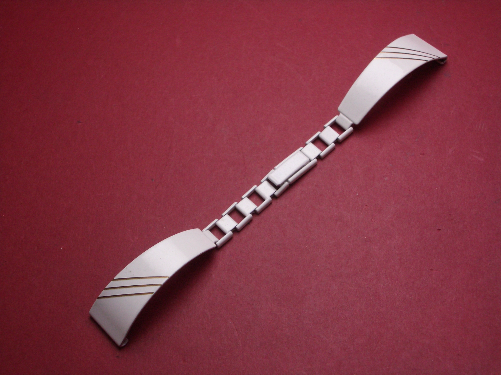 Metall-Uhren-Armband, 14mm auf 7mm an der Faltschließe, Farbe: weiß/gold