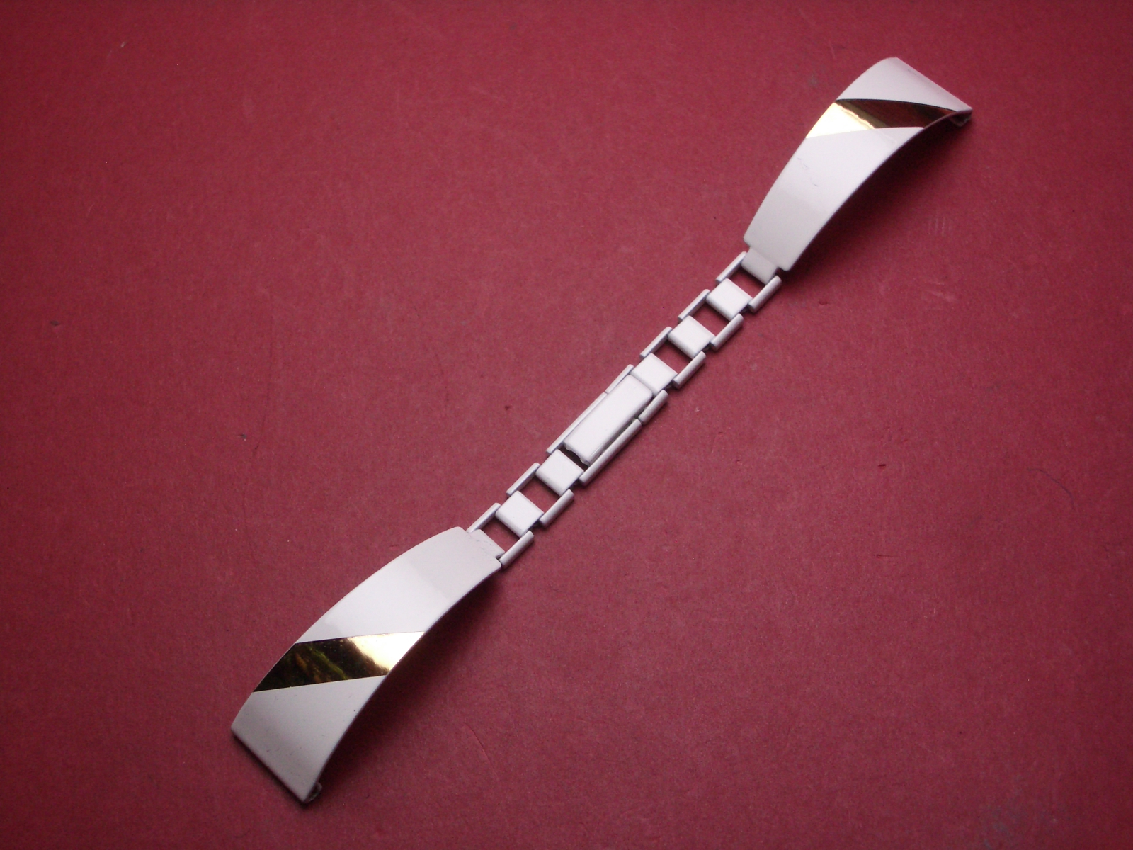 Metall-Uhren-Armband, 14mm auf 7mm an der Faltschließe, Farbe: weiß/gold